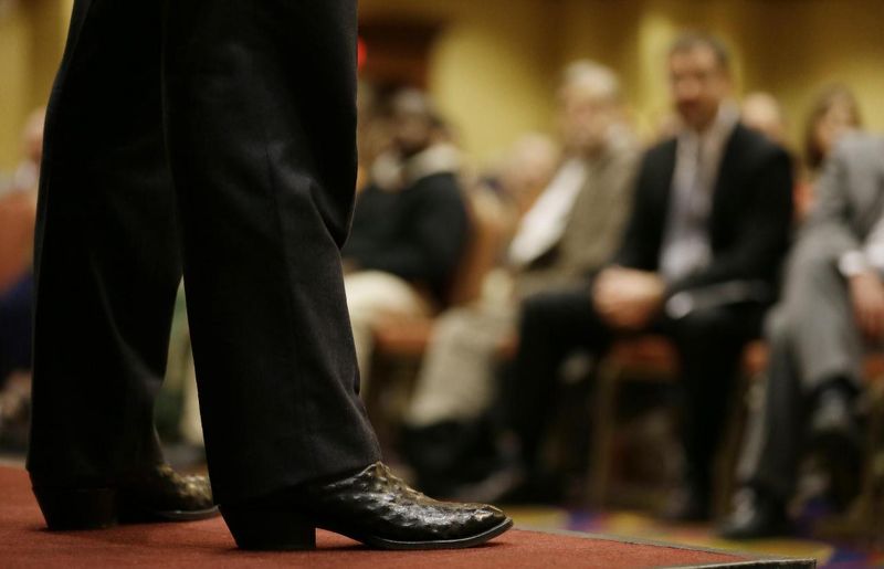 Ted Cruz’s boots are seen as he speaks at an event in Des Moines, Iowa, in March 2014. (Photo: Charlie Neibergall/AP)